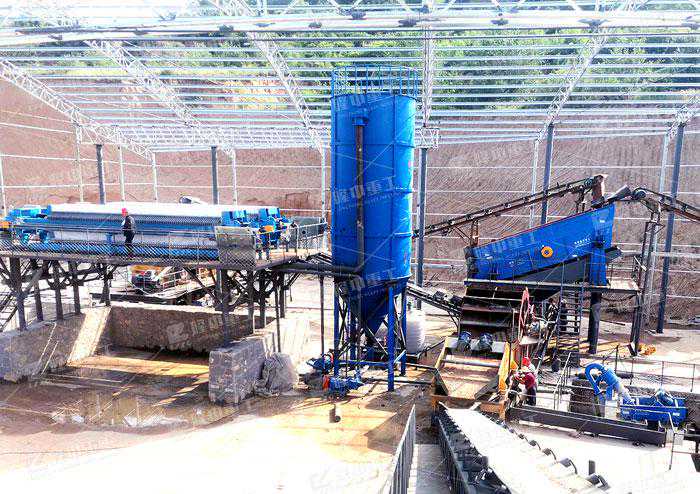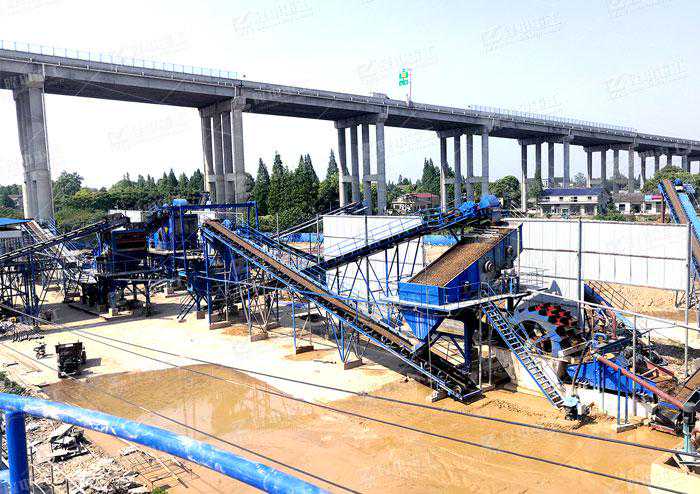 工艺流程:料仓→振动给料机→颚式破碎机→制砂机→振动筛→洗砂机→输送机;