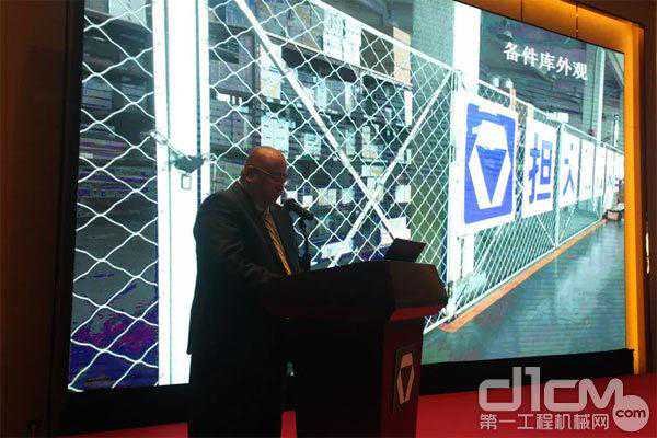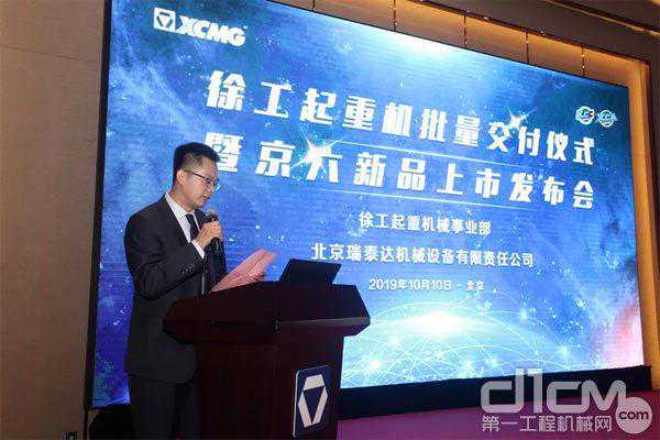 徐工集团起重机械事业部北京代表处副主任王佐山在现场对徐工起重机商务政策进行宣读