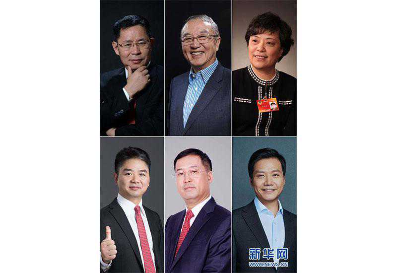 拼版照片:(上排由左至右)用友网络董事长兼CEO王文京,联想控股董事长、联想集团创始人柳传志,时代集团公司总裁王小兰;(下排由左至右)京东集团董事局主席兼CEO刘强东,利亚德创始人李军,小米科技董事长兼CEO雷军。新华社发