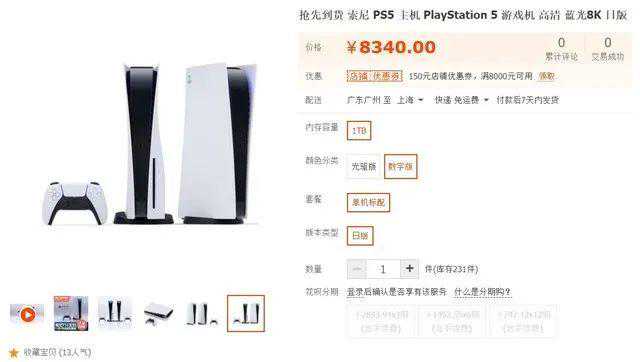 据悉,淘宝第三方卖家的PS5日版数字版首发报价为8340元,光驱版报价8760元,这价格真的是太黑了。