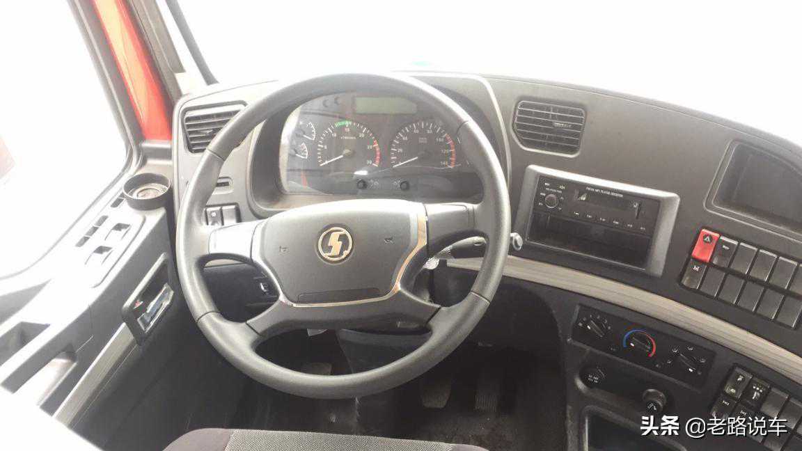 驾驶室内部设计的中规中矩,全部都是主打实用性的配置。仪表盘上基本没有电子化设备的融入,左3右3对称式设计非常便于观察,中间安装了一个黑白液晶显示屏。