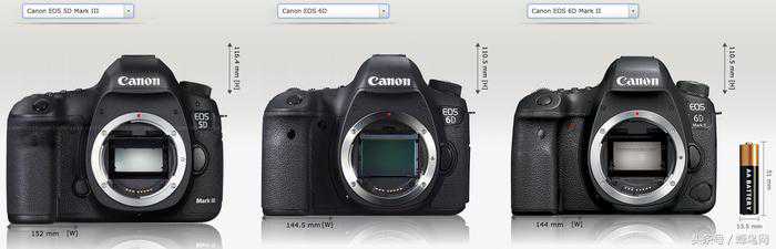不过在正式开始评测以前,我们首先来看看佳能EOS6DMarkII和佳能EOS6D以及佳能EOS5DMarkIII之间到底有多少的区别: