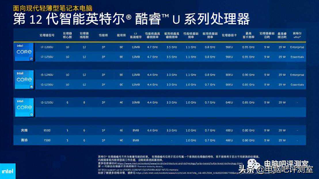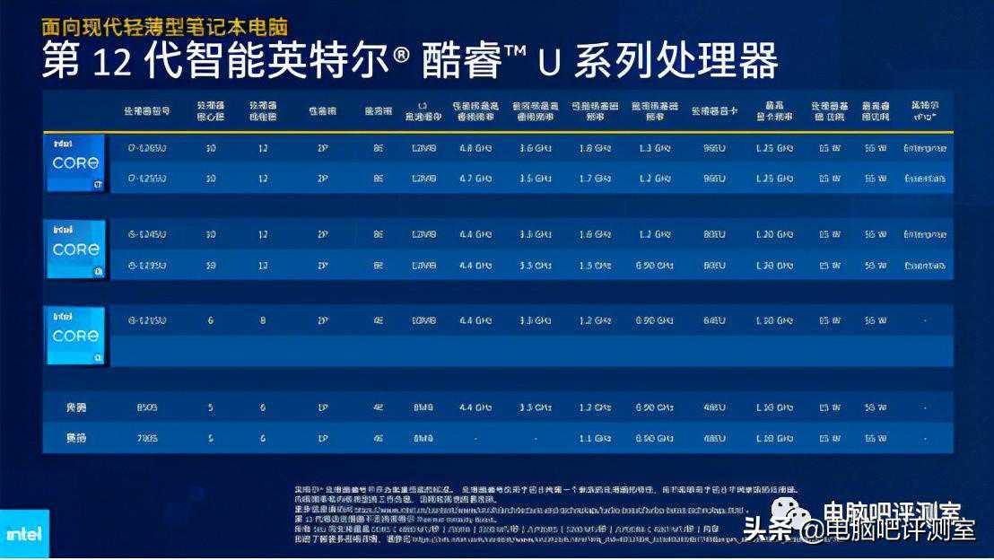【1】概况英特尔已于今日0点正式解禁基于第12代AlderLake架构设计的P系列、U系列移动版处理器,其中U系列根据产品TDP设定的不同,分为U15和U9两大系列。核心渲染图虽然只是模拟,但也已经明......