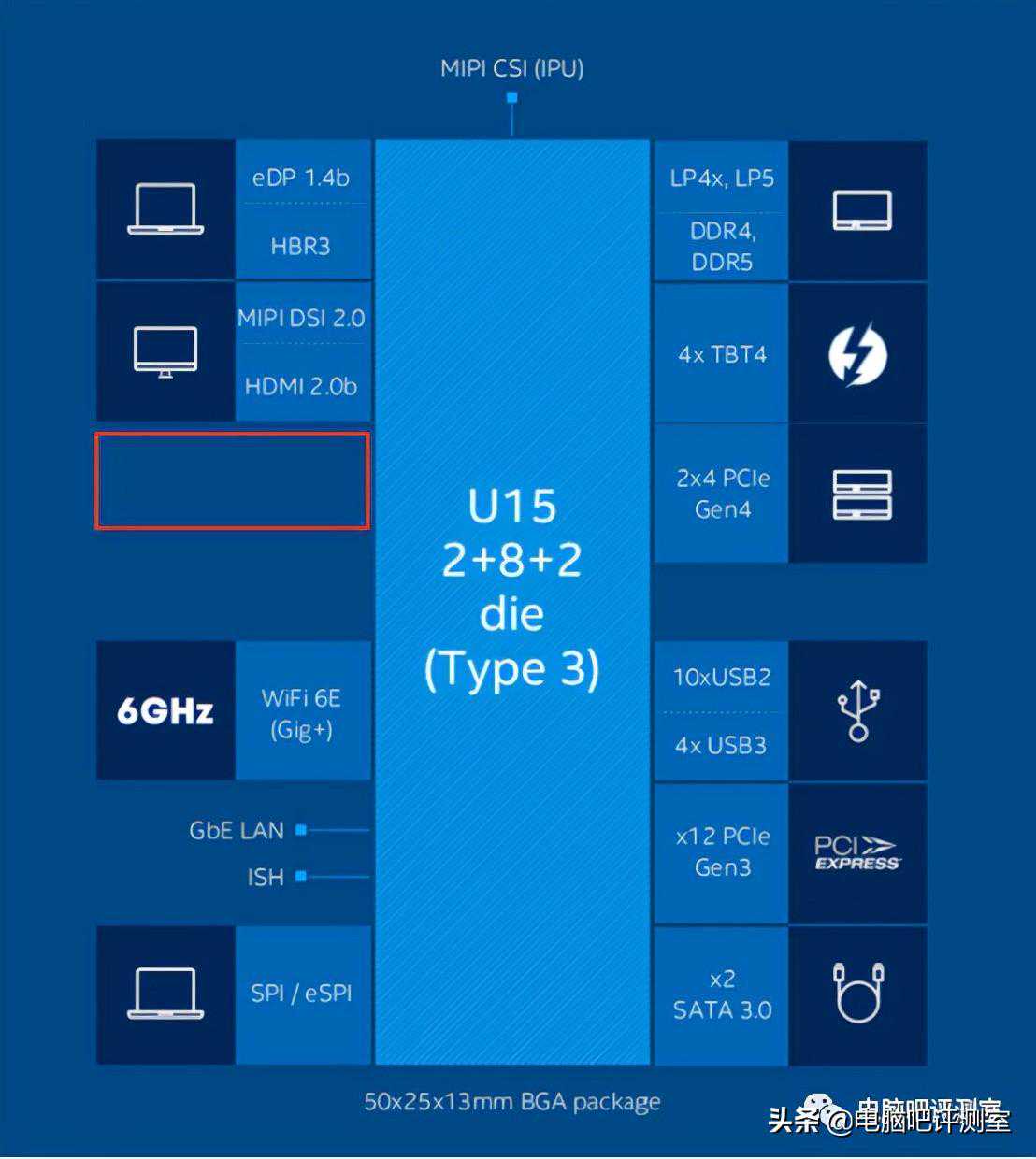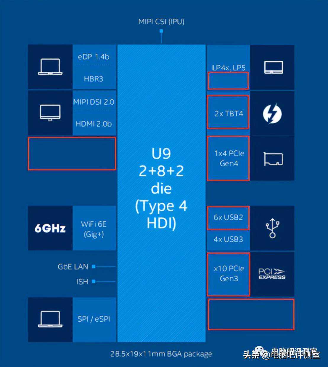 U9系列在拓展功能上的缩水也非常明显,和U15相比,不再支持标准DDR4/DDR5内存,此外仅剩一条、十条、两个Thunderbolt4、六个,而且不再支持SATA6Gbps,但保留了四个。这个拓展能力对于超薄本来说完全够用,这类笔记本不可能加装独显,并且内存一般都是板载形式,1条也已经足够,此外4个USB3+2个雷电简直太富裕了,不少游戏本都用不上这么多扩展口,雷电只敢抠抠搜搜给1个。现在的厂商为了把游戏本、性能本体积压缩,都是想方设法给Type-C或1-2个雷电口,让消费者自己买转接器转接出多个标准USB,所以我说,U9系列把USB3再砍两个、全砍光,问题不大的~英特尔这是在照顾那些未来集成此类处理器的工控机主板~