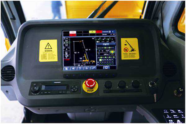 XCT55L6的上车驾驶室采用集成化总线面板,搭载10寸真彩色触摸屏,能够实时显示发动机转速、卷扬速度、油温等多种信息。