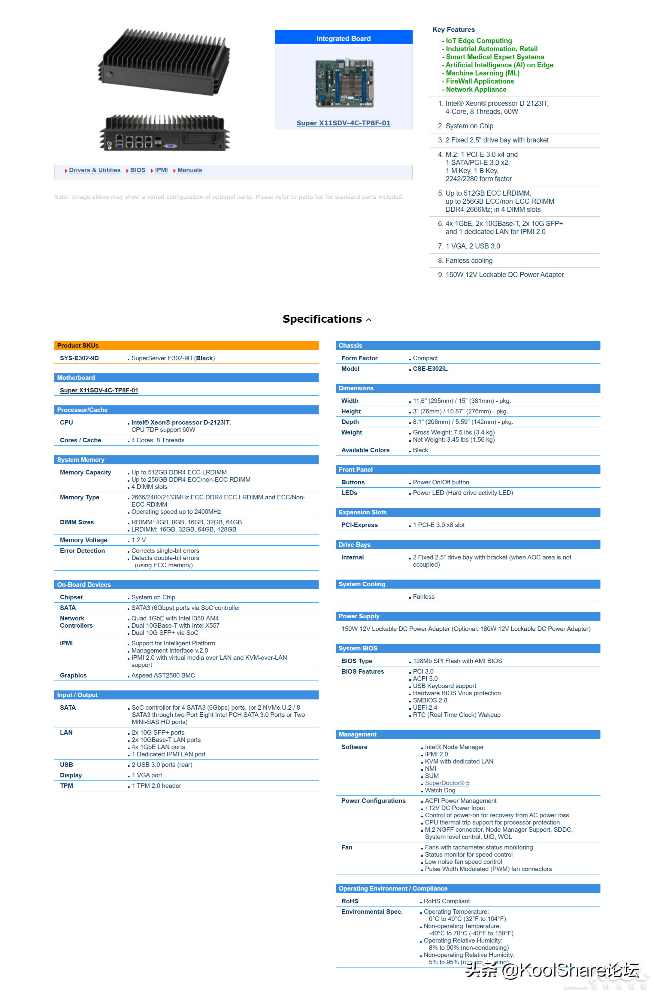▲E300-9D-8CN8TP是一台好机器,除了噪音基本找不到其他的缺点。对于企业用户而言,噪音可能不算什么问题,但是对于家庭用户而言,这噪音就让人头疼了。因为koolshare论坛软路由说要来了,被动散热+i7CPU+万兆网卡的组合让我速度出手了E300-9D-8CN8TP。无奈,等了n久的论坛软路由还没出货,超微又发布了E302-9D,全被动式散热,再也不用担心噪音了。正好倍联德(购买链接)有货,不等了,直接拿下
