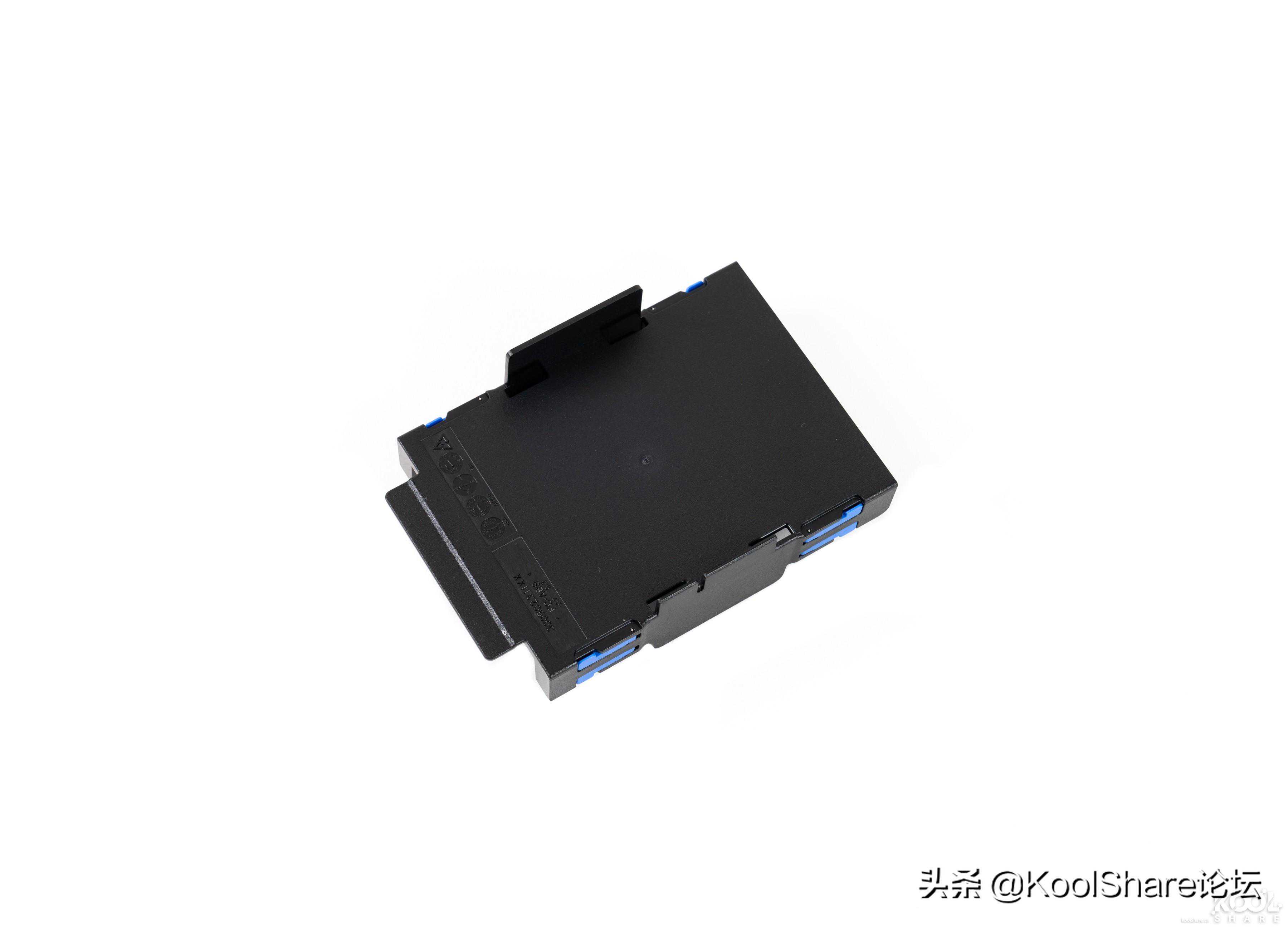 ▲散热器正面贴有蓝色的散热垫,散热器通过散热垫和顶盖接触,将热量传导至外壳上