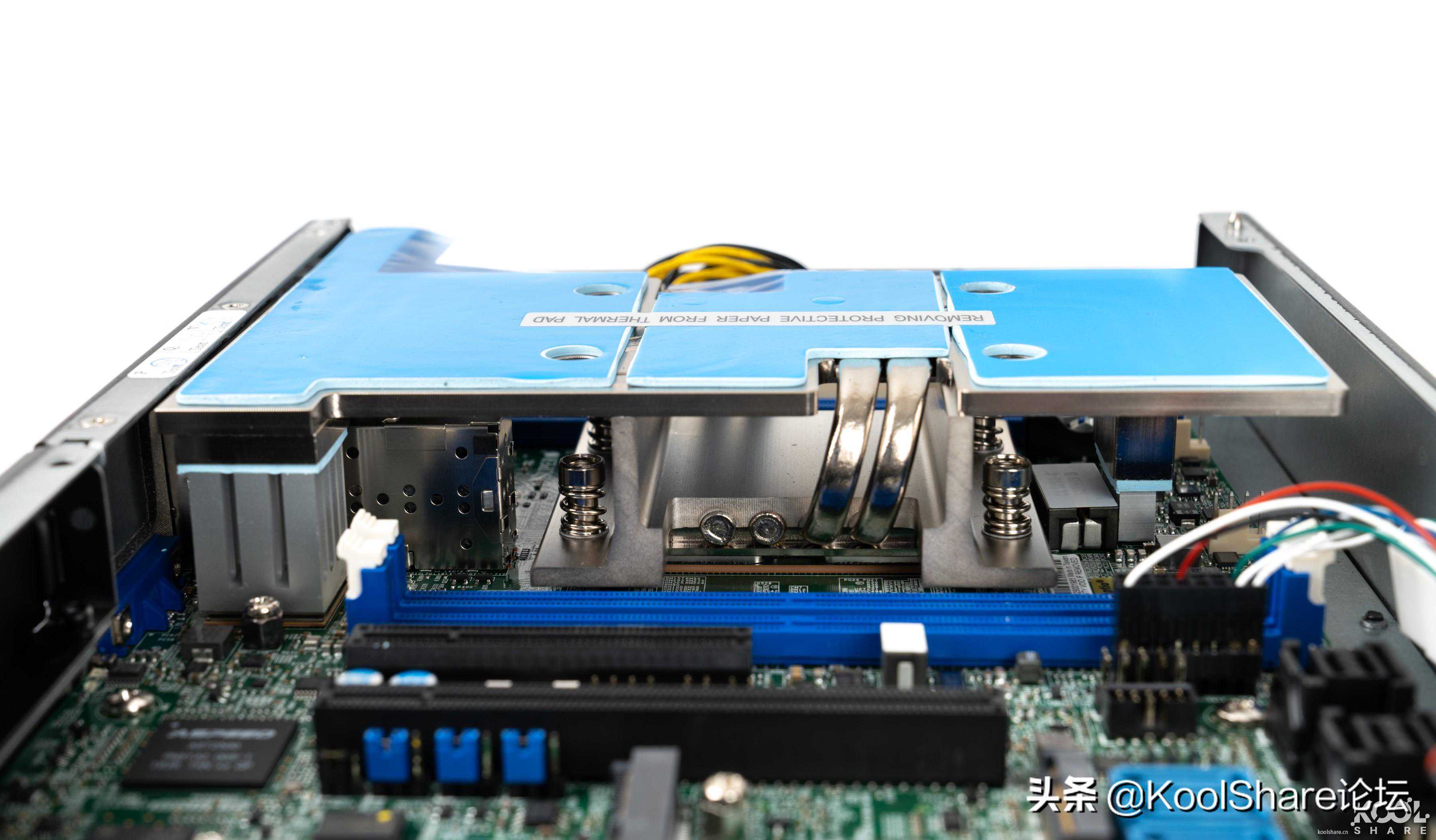 ▲散热器不但负责对CPU进行散热,还帮万兆PHY芯片以及供电Mosfet芯片进行散热