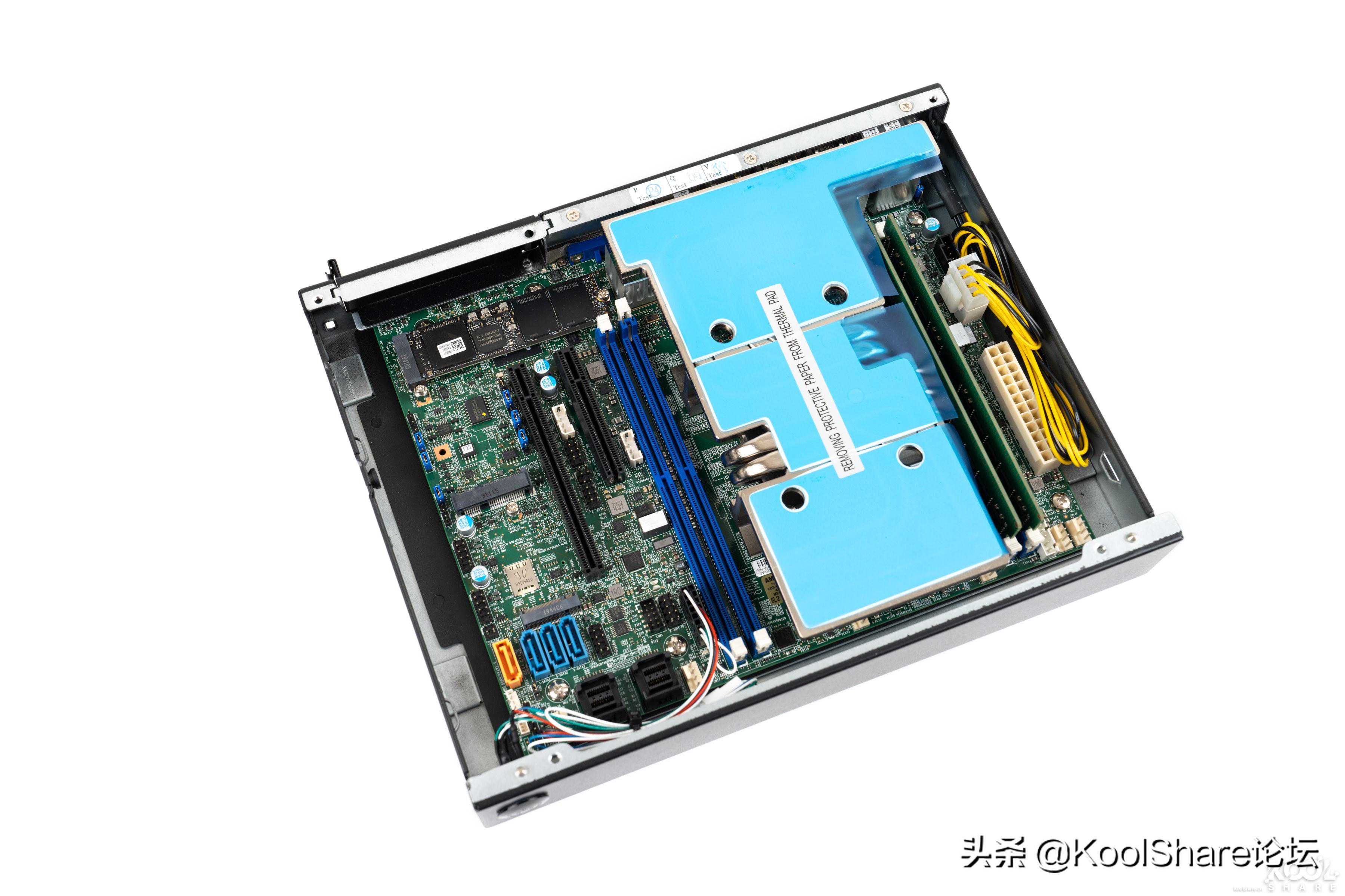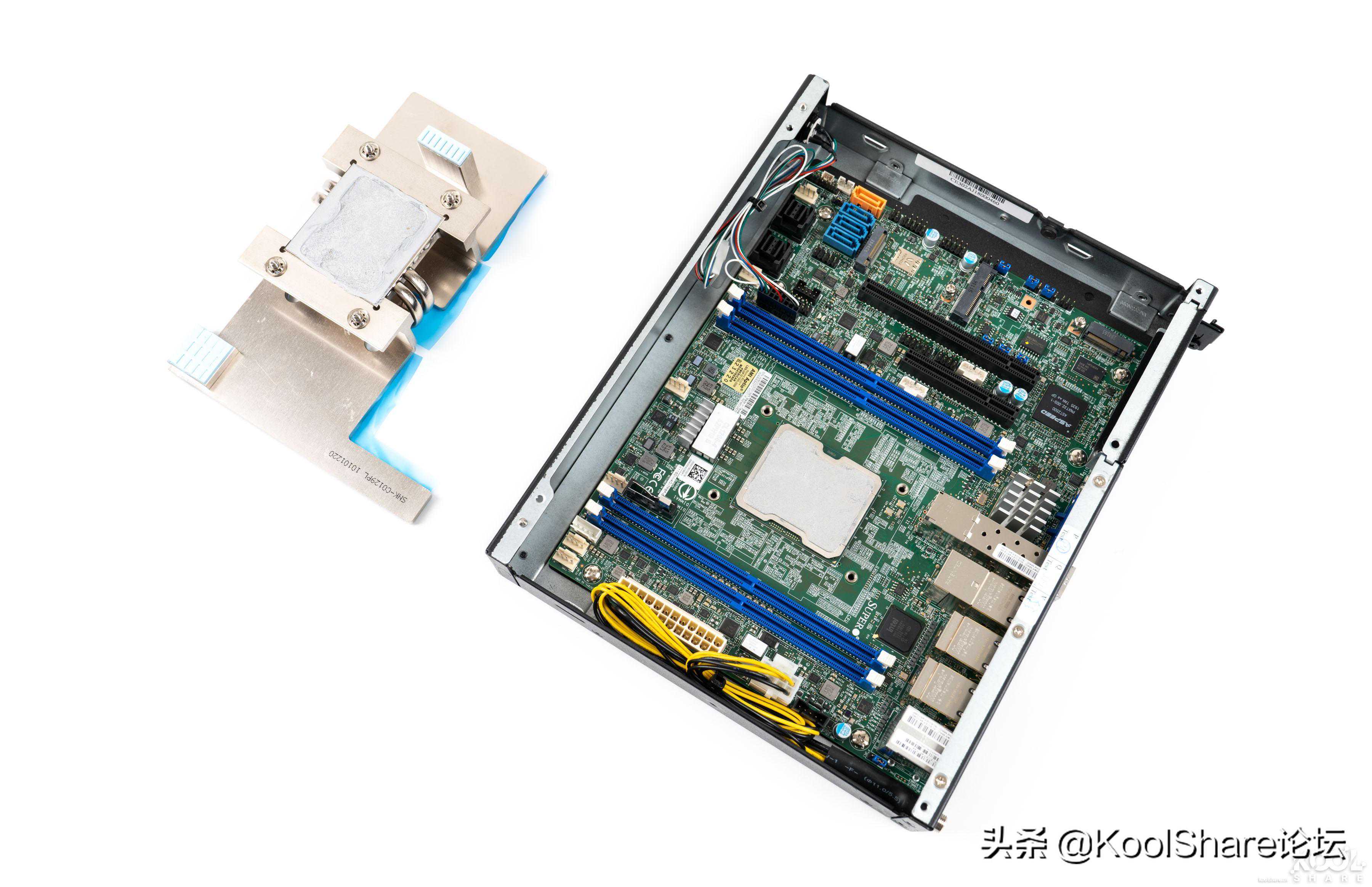 ▲将X11SDV-4C-TP8F-01主板从CSE-E302iL机箱中拆出,CSE-E302iL机箱采用铁壳打造