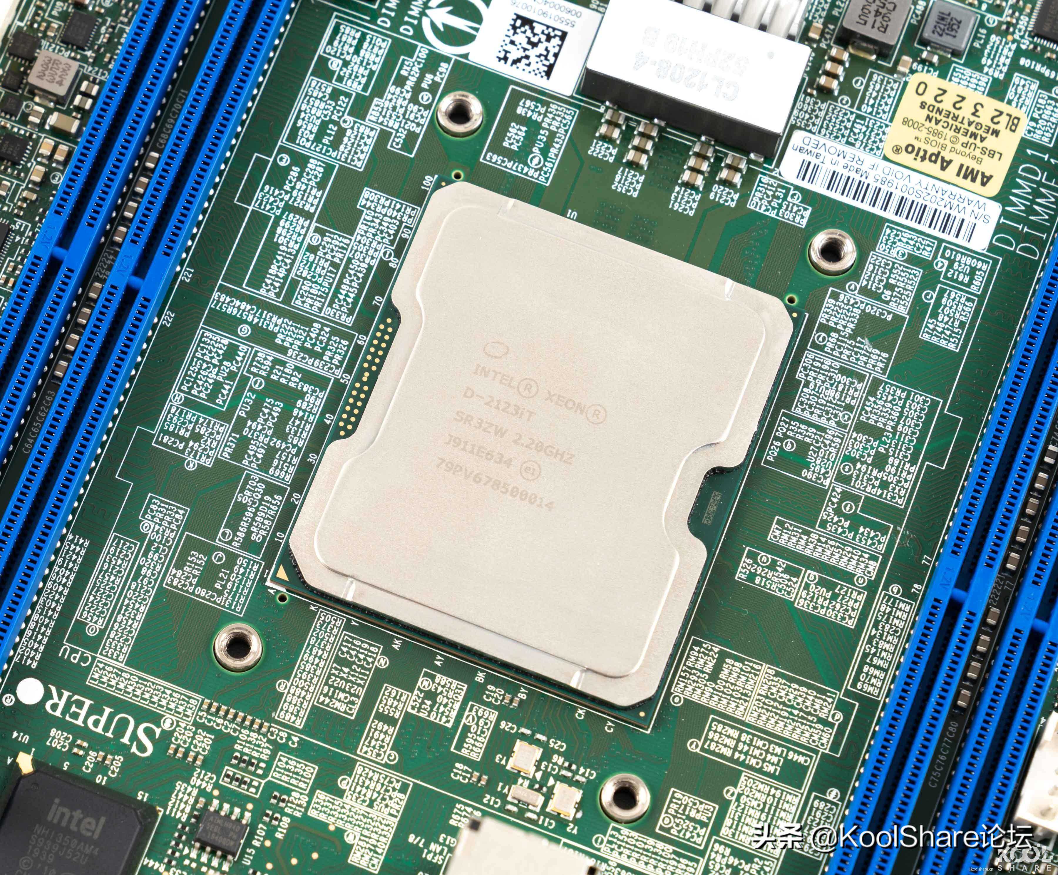 ▲IntelXeonD-2123ITSoCCPU,集成了PCH。14nm制程,4核心8线程,主频是2.2GHz,最大睿频3.0GHz,60WTDP,支持四通道ECCUDIMM/RDIMM内存