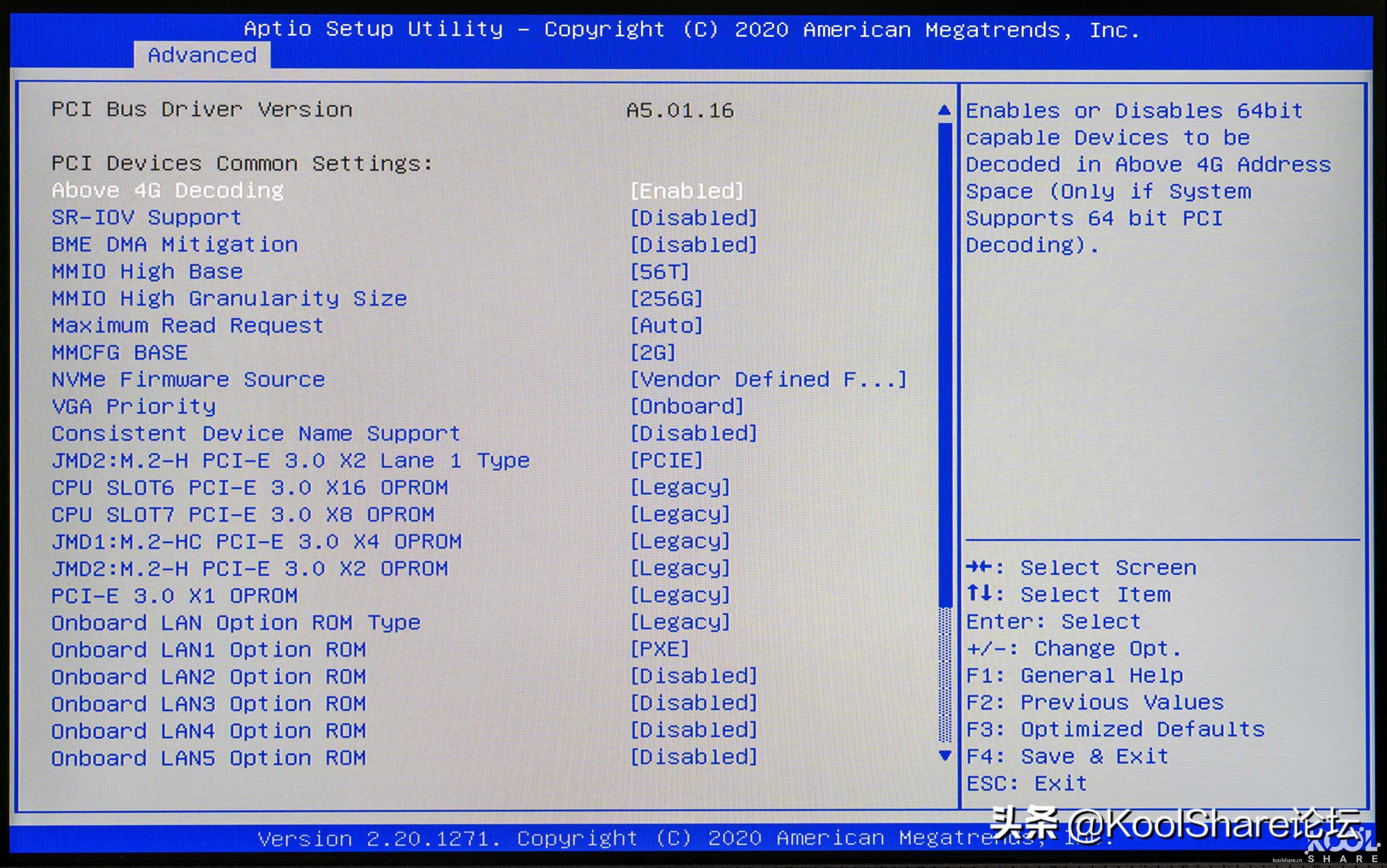 ▲PCI设备配置,在这里可以对每个PCI插槽进行设定