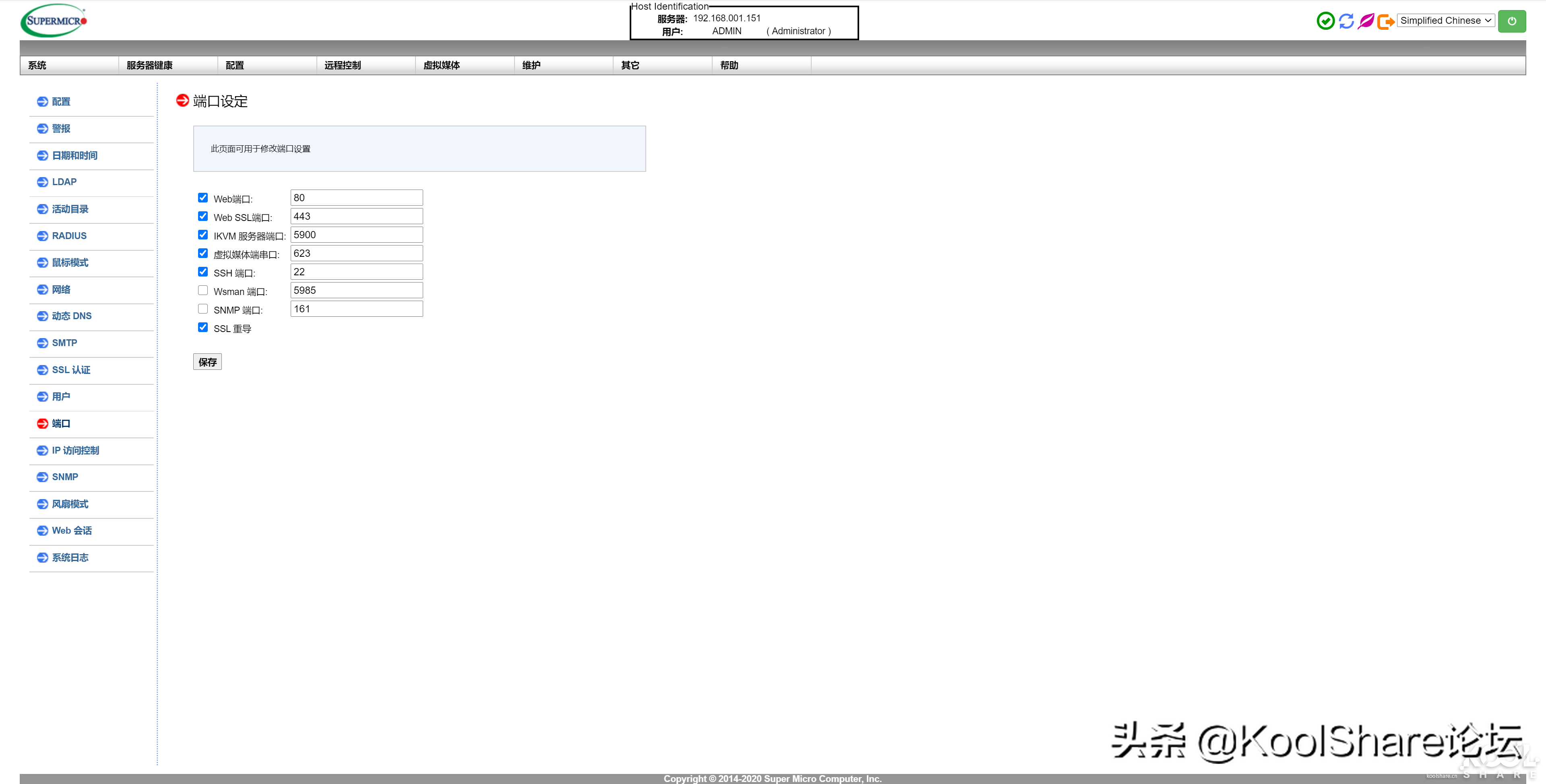 ▲主板上的IPMI管理接口也是可以设定的