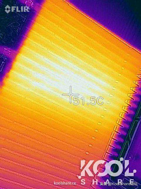 ▲外壳和CPU散热器对接处温度最高,在51.5度左右