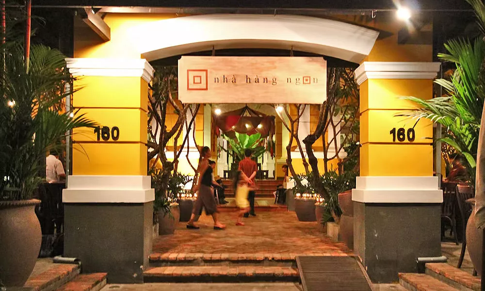这家餐厅地理位置很好,主营越南菜,装修很有异国风情。餐厅共有三层,一楼的院子中绿树环绕,晚上还有点点灯光,气氛极佳。许多外国人都喜欢来这里用餐,建议早点前来。