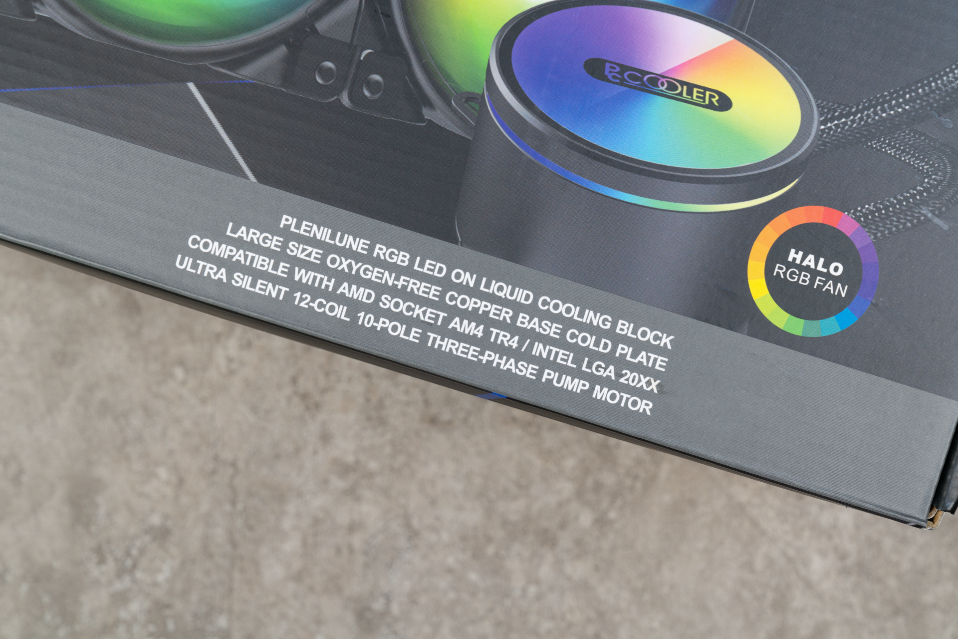 外观展示▲包装的正面直接展示出这款水冷的RGB灯效,尤其是冷头的灯效让我特别种草。
