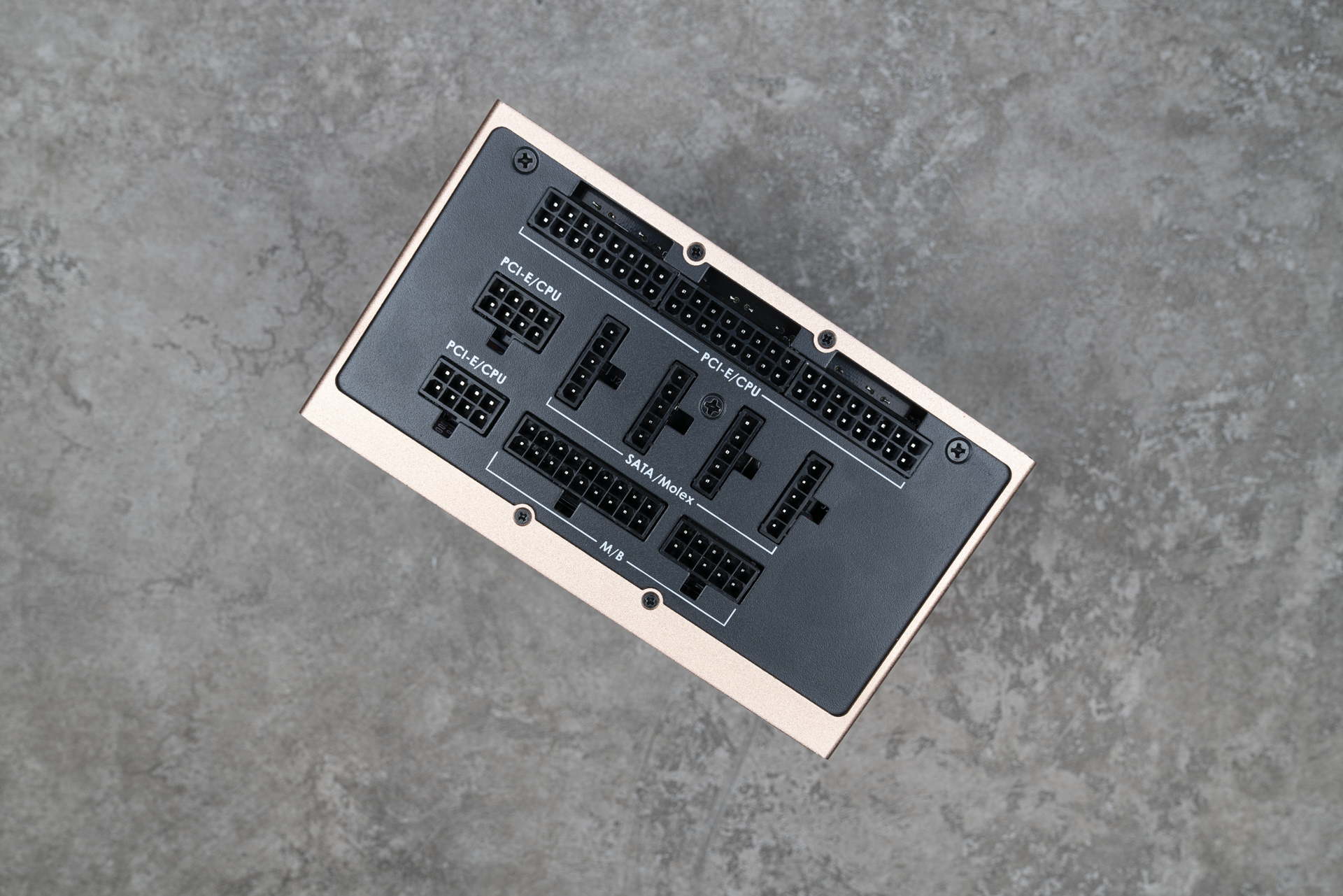 ▲琳琅满目的输出口,单路12V的功率可达996W,整体最高功率可达1000W,附以80PLUS金牌认证,可谓是高端必选之一。