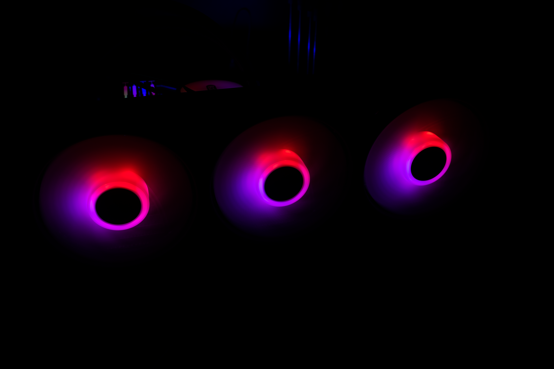 ▲凑近点看风扇,三把12cm风扇均为九片扇叶,可以有效提高风量,总体风量可达72CFM。