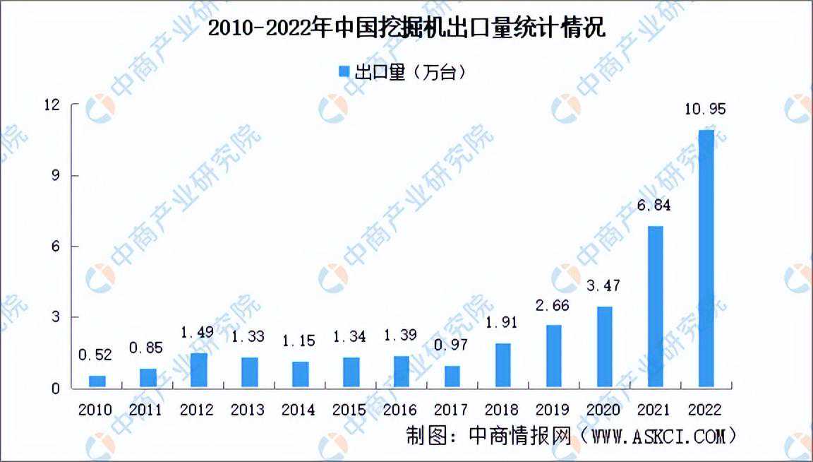 2012年,年出口量只有1.49万台;2022年,年出口量达到了10.95万台。