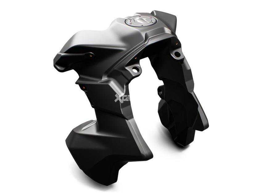 简洁的车身设计最大限度的减少了易损塑料饰板的应用,跨越车身两侧的油箱也很容易让人联想到老款的950/990Adventure。