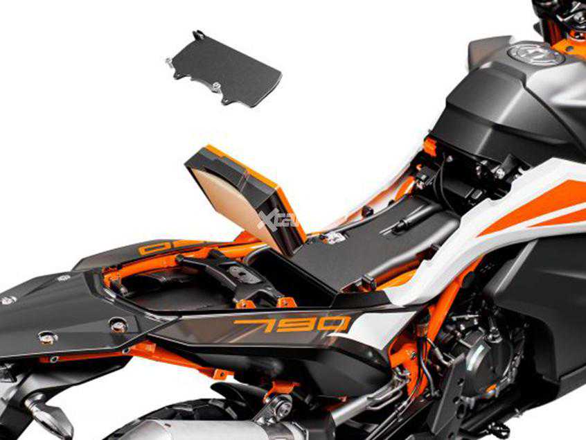 为了满足紧凑和轻量化的车身设计,KTM一如既往的对油箱做了些手脚,20L的大容量油箱几乎横跨了整个车身,这种源自KTM越野拉力车型的设计成了790ADV上一个十分个性且有效的设计。