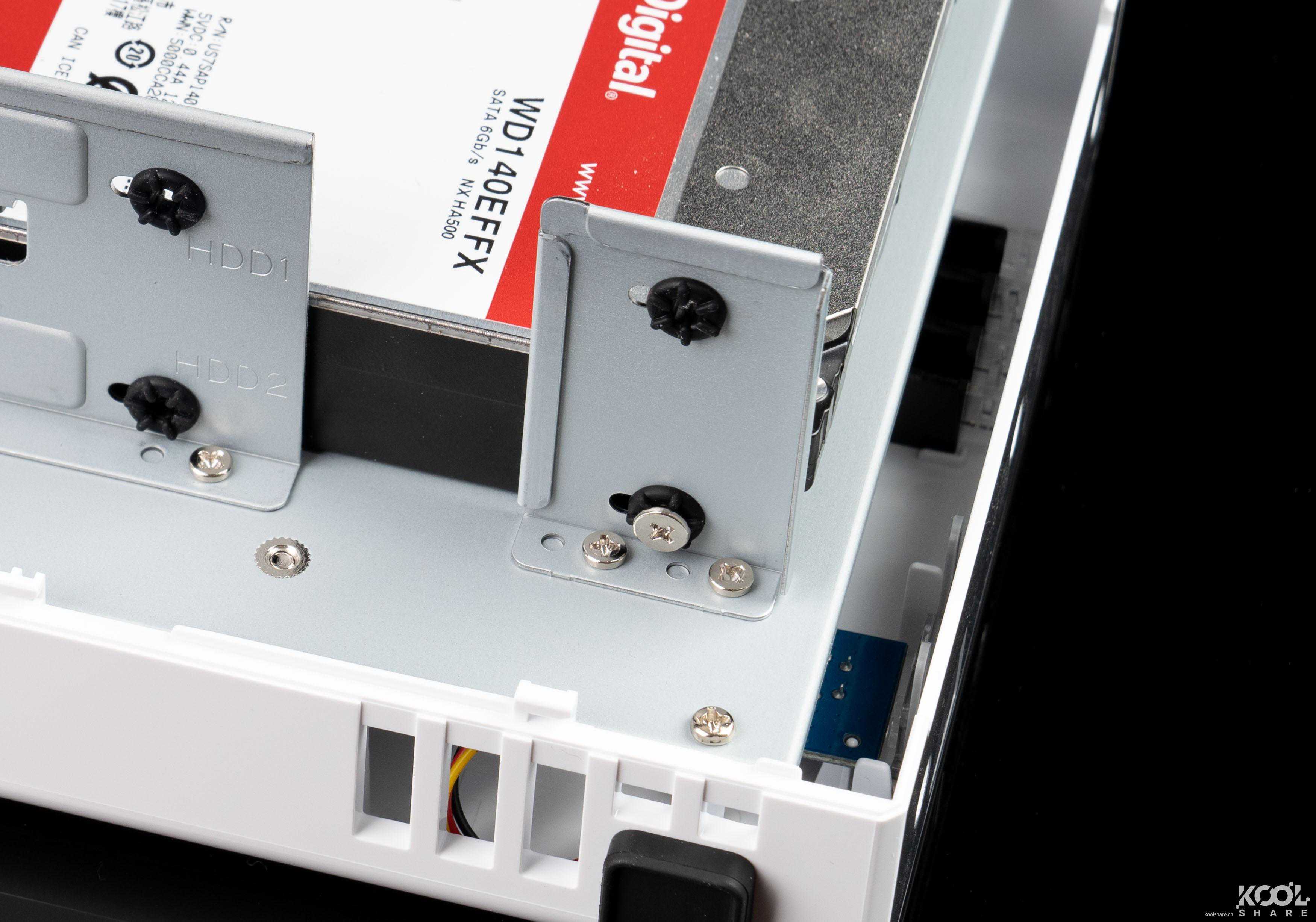 ▲装上两块WD140EFFX14TBHDD。DS220j最高支持安装两块16T的硬盘,足够普通家庭用户使用
