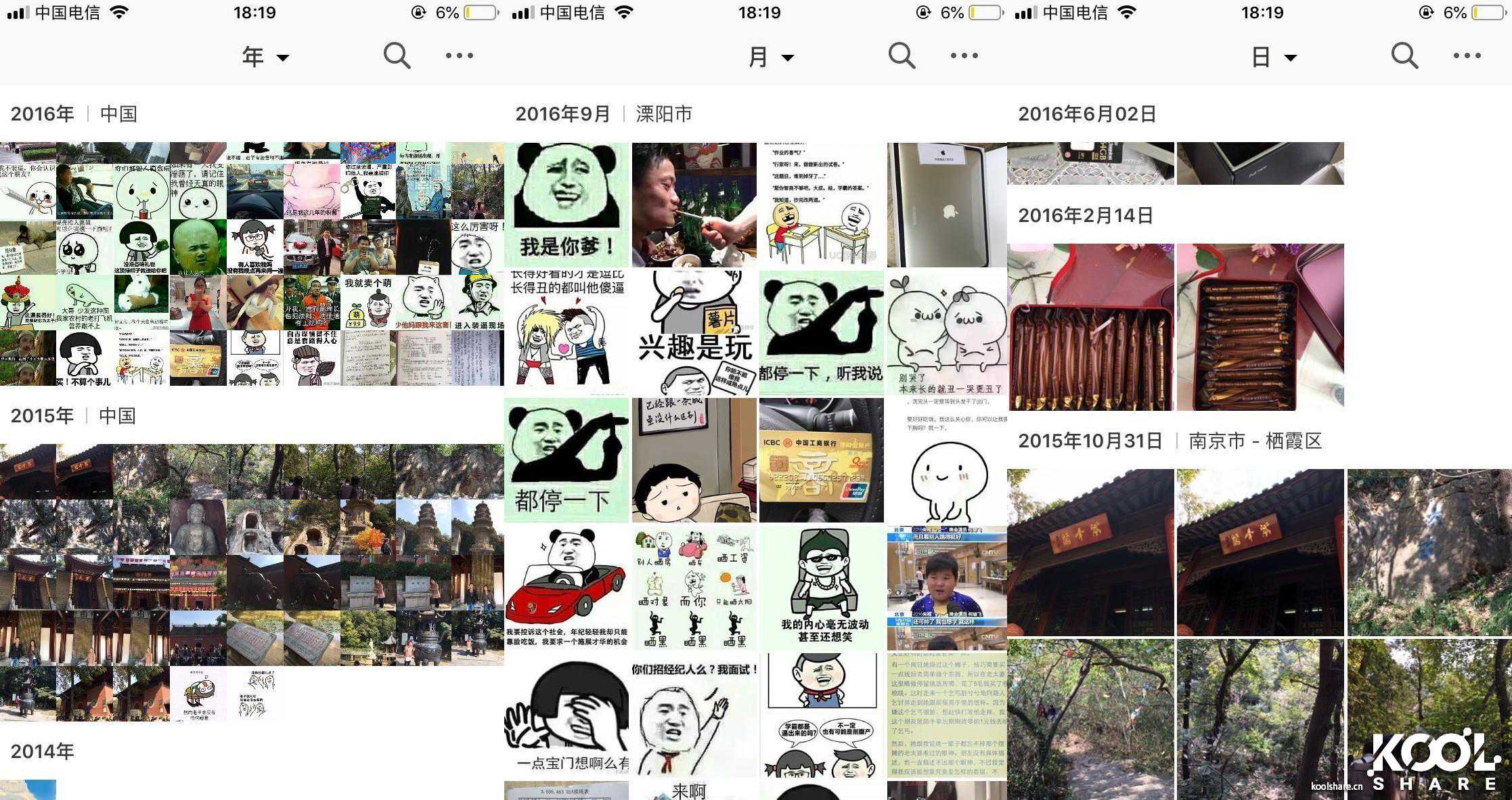 ▲使用手机客户端Moments可以将照片按照时间分类,可以按照年、月、日的日期查看照片