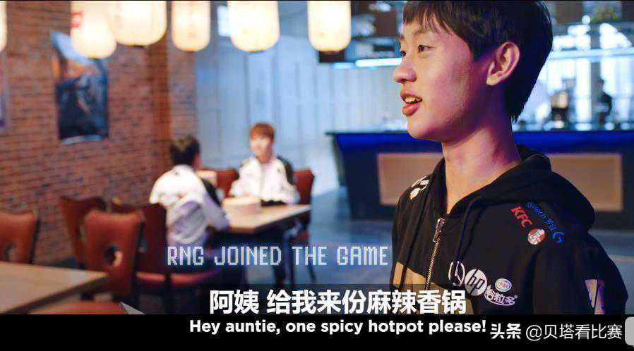 第八个Jinjiao拿着菜单说先点菜吧,是IG的前队员Kid的先点菜梗。