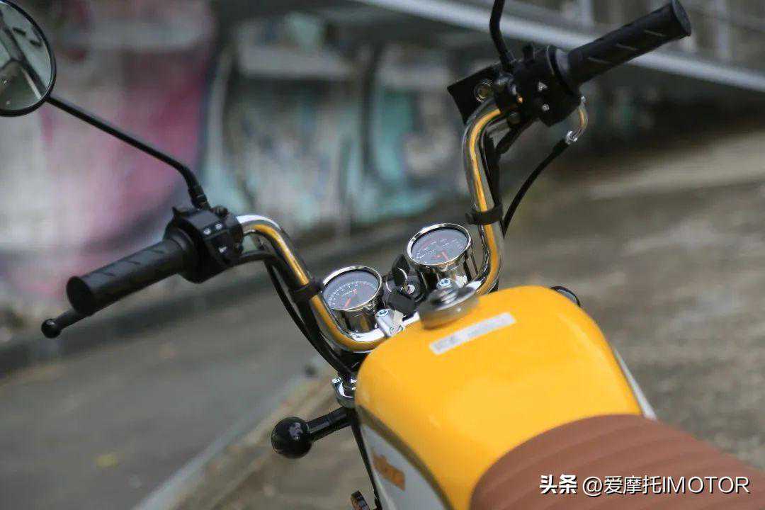 ▲经典的双机械仪表,不仅外型简约复古,同时镀铬设计也带来鲜明质感,左侧为转速表/低油量提升灯、右侧为时数表/总里程/空挡提示/灯光提升,基础行车信息一目了然。