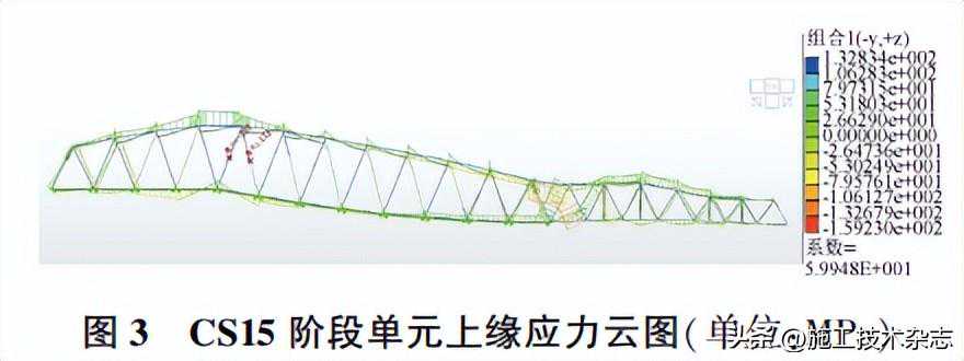 根据整个施工阶段模拟分析,在CS13~CS18施工阶段,桥体结构出现最大应力阶段(见图7)。