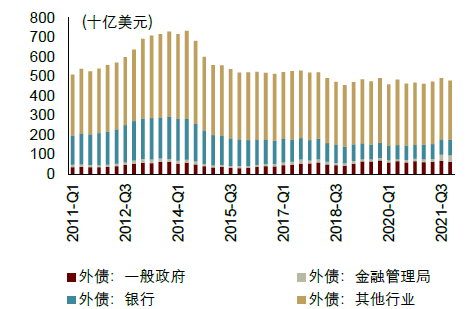 图表36:俄罗斯外债中除政府银行外,其他行业占比高