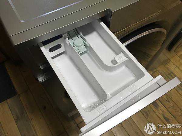 洗涤剂抽屉采用了新型的布局方式,扩大了主洗区域,方便投放,但右侧的柔顺剂在内侧,如果在开始进水后还想追加,拉开抽屉后会因为水路的问题,可能会让柔顺剂提前投入,所以使用柔顺剂的情况下,进水时就不要再次拉开抽屉。