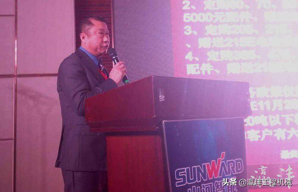 恰逢双十一,听完范院长对山河智能产品进一步的介绍之后,大家的购机热情高涨,山河天诚也带着极大的诚意为在场的新老客户送来钜惠。山东山河天诚总经理杨天鹏先生上台宣读优惠政策。