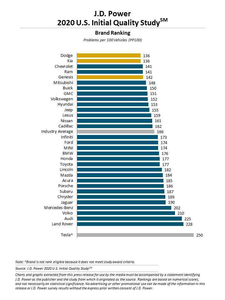 最近美国公布了最新的新车质量排名,令人意外的是,道奇居然以每100辆新车136个故障和起亚并列第一名!而排在其后的则是雪佛兰、Ram、捷尼赛斯。大众的质量排名甚至比雷克萨斯还要高不少。而我熟知的丰田和本田更是排在了平均线以下,新车故障数甚至比福特更多。