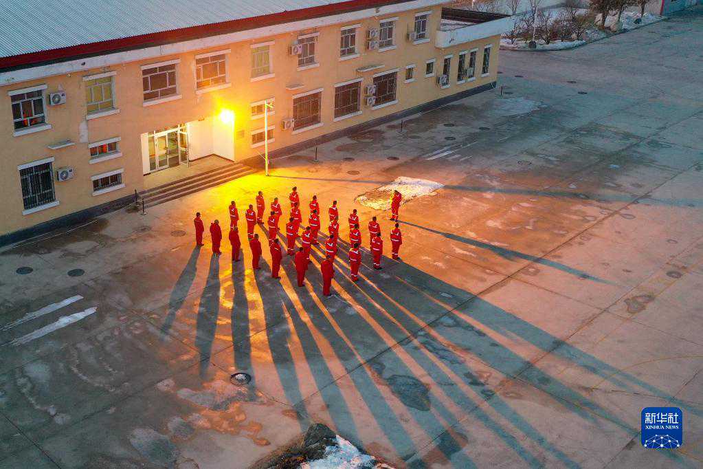 2021年2月4日,在新疆霍尔果斯压气首站,运维人员进行班前点名。