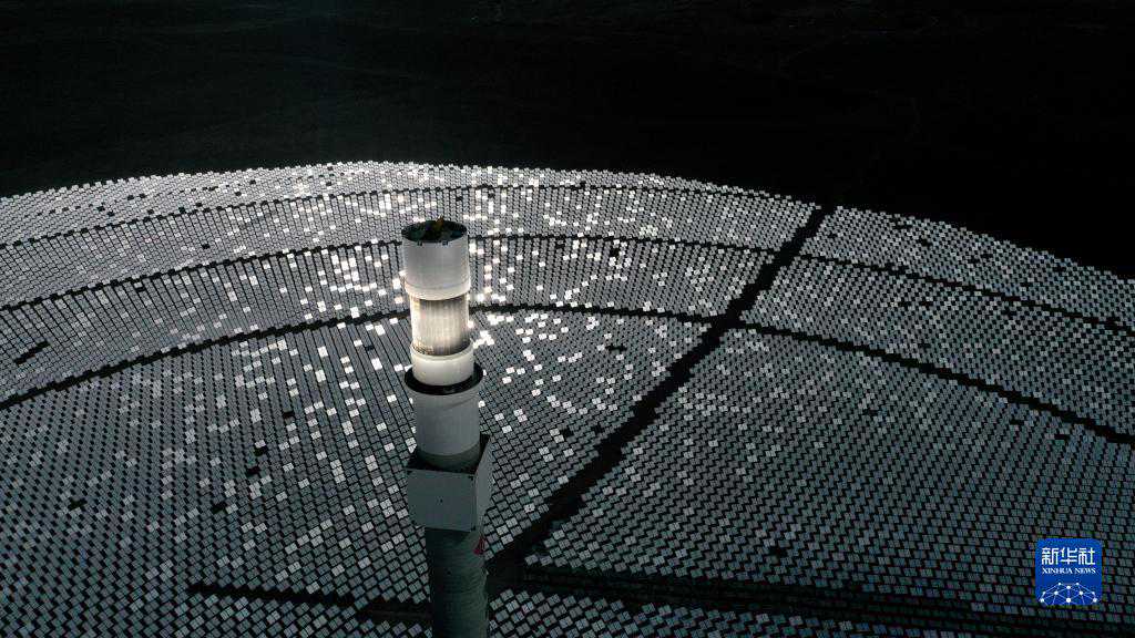 这是2021年3月3日拍摄的位于青海省海南藏族自治州共和县光伏产业园内一处塔式光热发电项目。