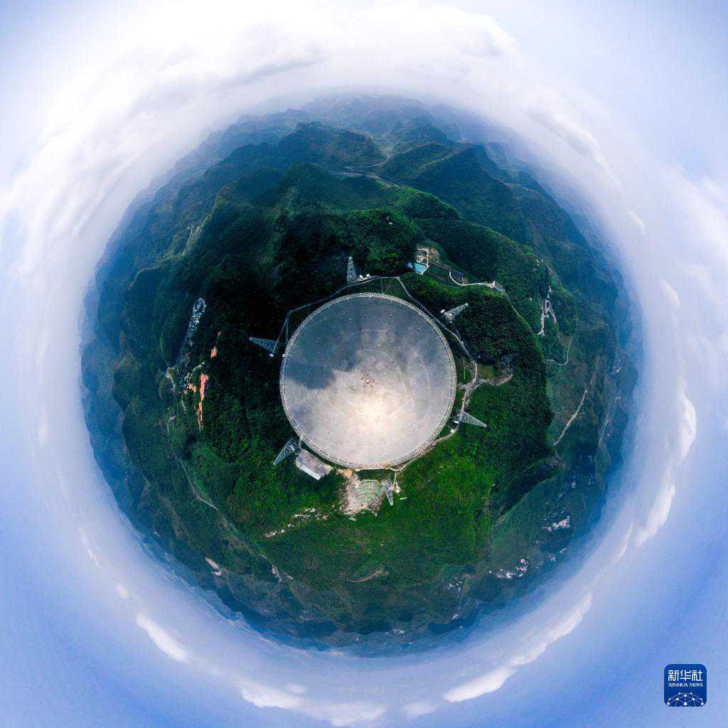 这是2021年3月28日拍摄的位于贵州省平塘县的“中国天眼”(无人机全景照片,维护保养期间拍摄)。