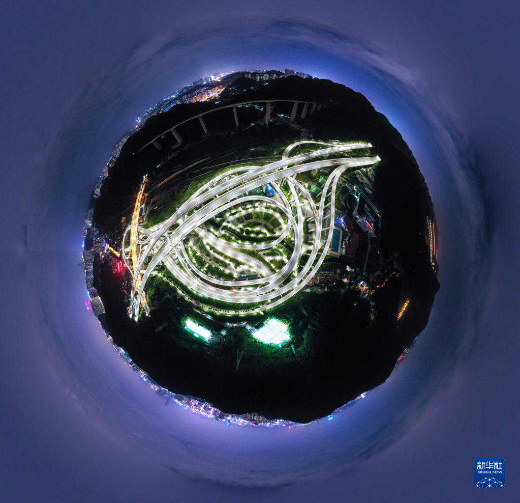 这是2021年7月21日拍摄的贵州省贵阳市黔春立交桥夜景(无人机全景照片)。