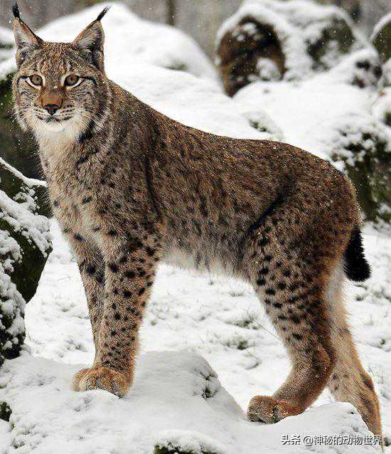 欧亚猞猁--体型最大的猞猁属物种欧亚猞猁是猞猁属中体型最大的物种,体长80-130厘米,肩部站立约60-75厘米高,尾巴长为11-24厘米。平均体重范围在15-30公斤之间,有的大型个体体重可达38公斤,甚至45公斤。