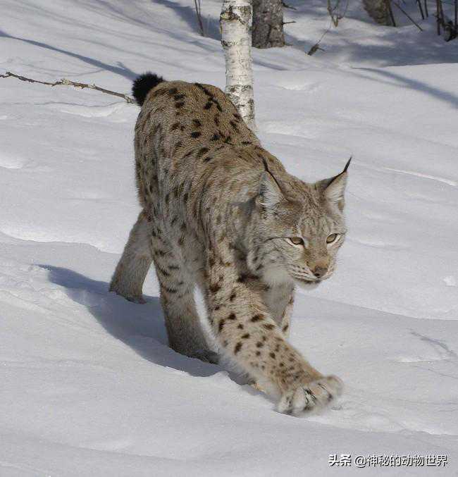 2、欧亚猞猁体型最大,脸周围与加拿大猞猁一样也长有一圈长毛,但是欧亚猞猁身上的斑点清晰明了,而加拿大猞猁身上的斑点比较模糊,与被毛有些融合。