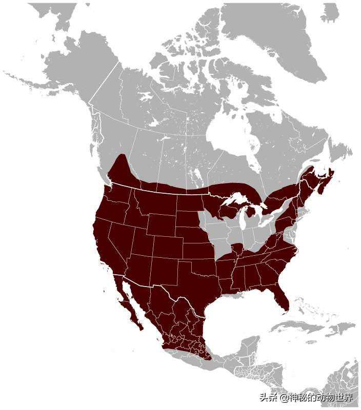 短尾猫:分布在加拿大南部、美国的大部分地区以及墨西哥北部和中部。