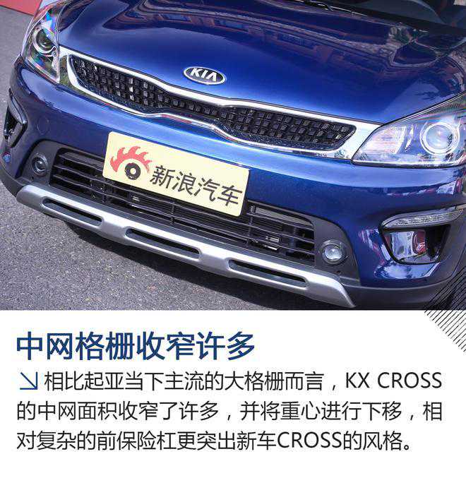 起亚KXCROSS的前脸非常不同于K2系列,格栅明显进行了收窄,CROSS风格的前保险杠比较复杂,与周围的包围相连,这让前脸的重心向下移了许多,整体非常起范儿。