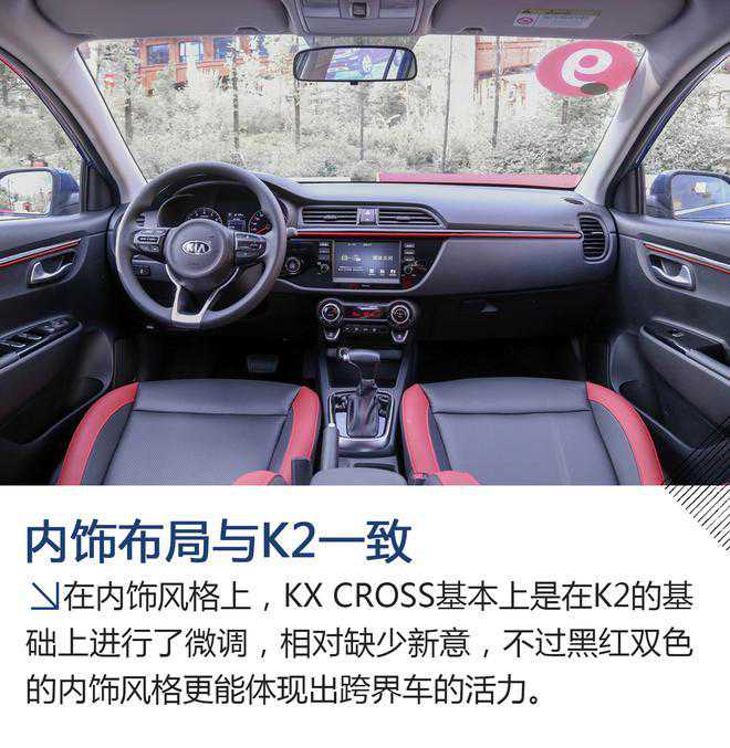 内饰设计上,KXCROSS并没有太多新意,而是基本上和K2保持一致,只是在一些细节上进行了微微调整,新车提供两种风格的内饰,一种是黑红双色系(如实拍车型),另一种是黑棕双色系。