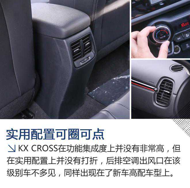 乘坐空间上,KXCROSS表现的足够到位,区别于小型三厢车的造型,新车在车身高度上更加有优势,所以后排头部空间更加充裕。身高183cm的体验者将前排座椅调整到舒适位置后,对后排空间进行实际展示,不管是腿前,还是头部,相比普通小型车都拥有较为有优势的空间。
