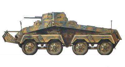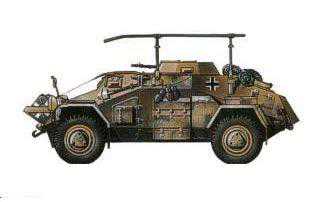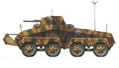 德军于1935年接收了他们的第一辆正儿八经的装甲侦察车,这就是,德军轻装甲车的中坚力量。这种车由两家公司组装,一家是位于艾尔宾的希肖工厂(SchichauinElbing),一家是下萨克森汉诺威机械制造厂(MachinenfabrikNeidersachseninHanover)。位于茨威考的霍希(奥古斯特.霍希,奥迪之父)公司生产地盘和75马力的V8引擎。这种侦察车由两名成员驾驶,成员上下车可以通过炮塔上的舱盖,也可以通过车边的小门进出。该车为后置发动机的设计,采用四驱驱动。最高速度可达55英里/时。最远可跑200英里。装有14mm的前装甲和6mm的后装甲,小型开放式炮塔配备一挺7.92mmMG-34机枪,后期型为MG-42机枪。设计过程中德国的工程师对他们自己的要求甚高,这使得后勤维修起来过于繁琐,造价也高。而后置的发动机有个好处,就是使得车体前方可以安装倾斜装甲,这可以为车辆防御来袭的炮弹提供一定的防御。除了只需两名成员驾驶,我们也可以从较其继任者更大的观察玻璃,方形散热器和有棱有角的车体后部来辨别它。在一些后期型的车上,一种28mm的sPzB41反坦克炮(Panzerbuchse)替代了MG-34,为了让它装上车还牺牲掉了一部分炮塔护盾。为了防空或防止步兵手榴弹攻击,这种侦察车还做了适当改进。国防军共接受了339辆。它在法国和波兰有过很好的表现,然而到了缺少良好路况的东线战场,它的表现就不那么令人满意了。于是于1943年便从火线上退下。
