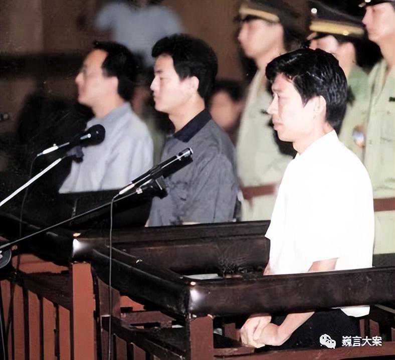 邓庆富三人在法庭上受审,从左至右:张斌、王立峰、邓庆富