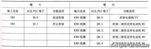 多级传送带控制需用到的输入/输出设备和对应的PLC端子见下表。