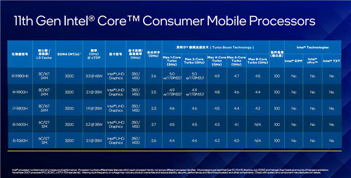 在11代酷睿游戏处理器中,Intel推出了多个型号,涵盖了酷睿i9到酷睿i5多个级别,目前市场上已经有多款11代酷睿游戏本上市,外观及配置全面升级,带来更好的性能及散热。