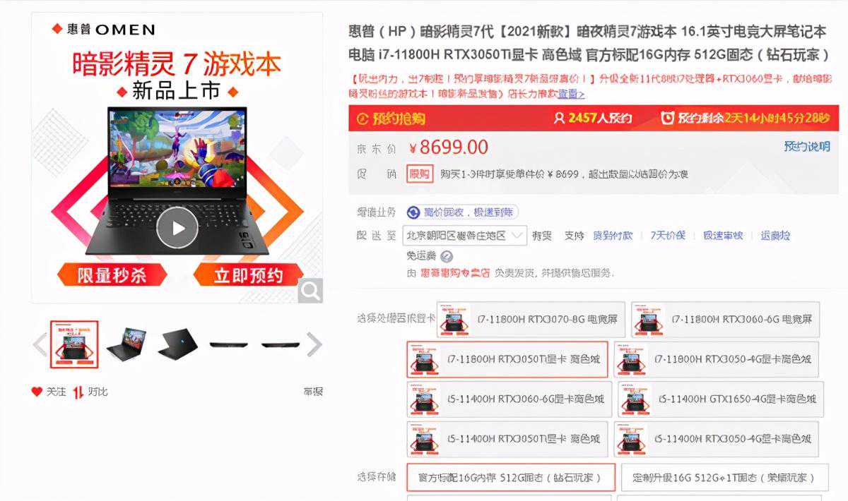 目前HP暗影精灵7的价格也很不错,只要8699元。