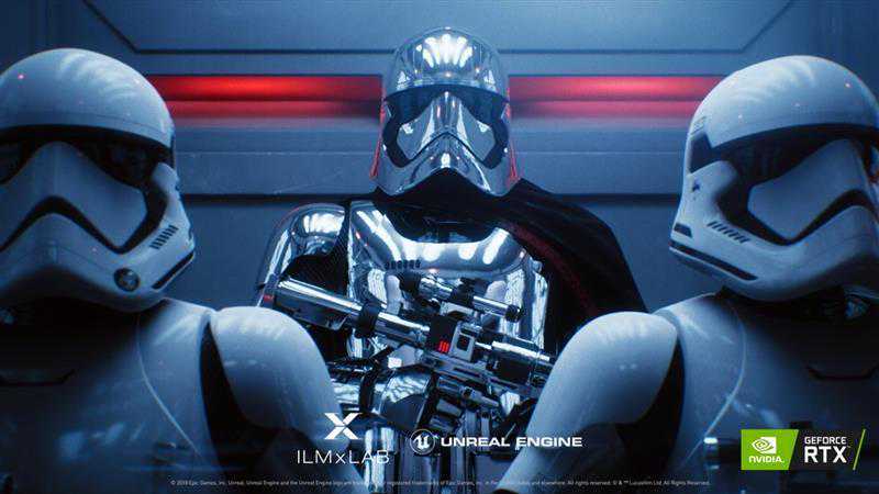 RTX2080Ti集成了68个RTCores,每秒能处理100亿条光线,而GTX1080Ti只能靠CUDA来计算光线,每秒能处理11亿光线。下面我们通过星球大战DEMO来演示光线追踪的性能,这个DEMO可以为展现出一个犹如科幻电影般的光影世界。
