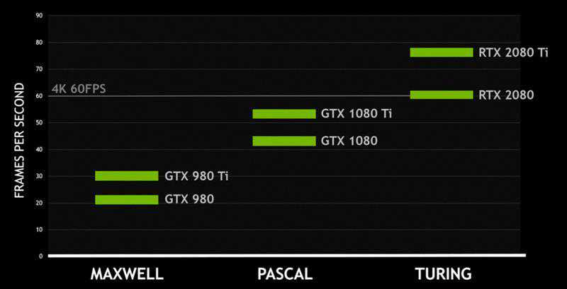 按照NVIDIA的说法,RTX2080就能基本实现4K分辨率下60FPS的游戏帧率,RTX2080Ti更是能够达到70-80FPS。当然具体还要看游戏需求,以及游戏设置,特别是某些高要求的技术特性,光线追踪打开后别说4K了,就连1080p就比较吃力。